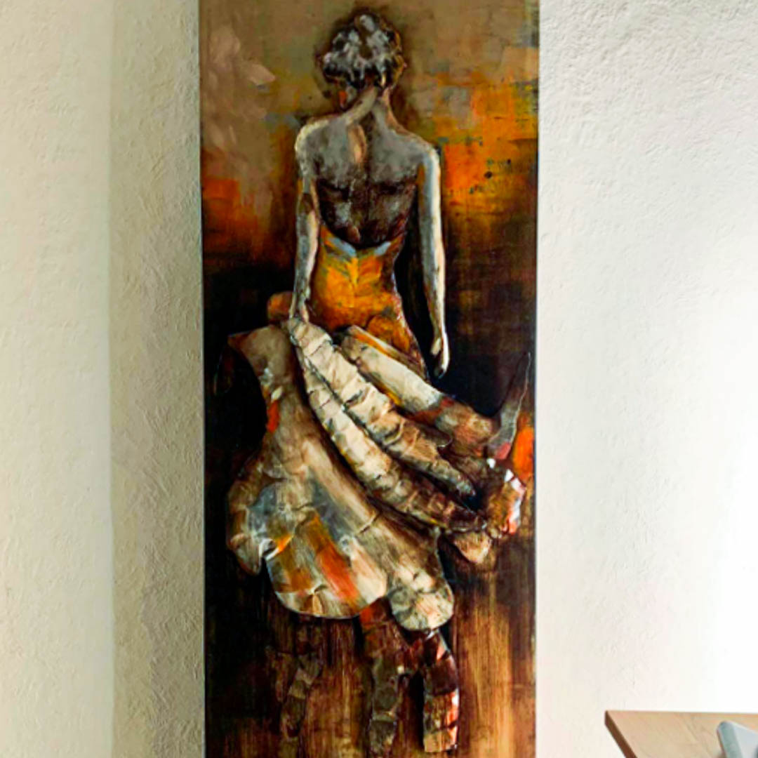 In una posa lasciva, la protagonista di 'Queen of Honor’ lascia cadere il velo dietro di sé, che in precedenza velava la sua figura. Il quadro in metallo in 3D ci mostra la sensualità di una donna con addosso un costume giallo e un telo tra le mani, forse in procinto di camminare. Le diverse sfumature di marrone che dominano il motivo ci danno l'impressione che la donna si stia recando verso la spiaggia per prendere il sole. Lascia fantasticare i tuoi pensieri mentre osservi sulla parete del tuo salotto quest'opera d'arte dal tocco erotico!