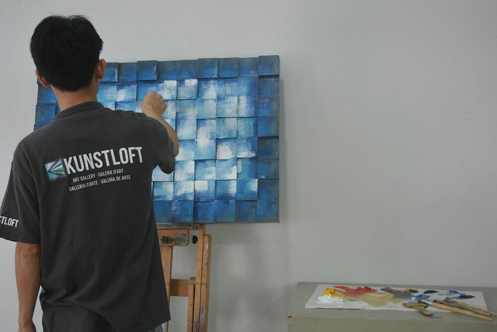 Il quadro in legno 'Reflection of the Sea' è un'opera d'arte che il nostro artista ha plasmato a mano in più fasi. Per concludere il quadro viene dipinto e laccato con estrema cura.
