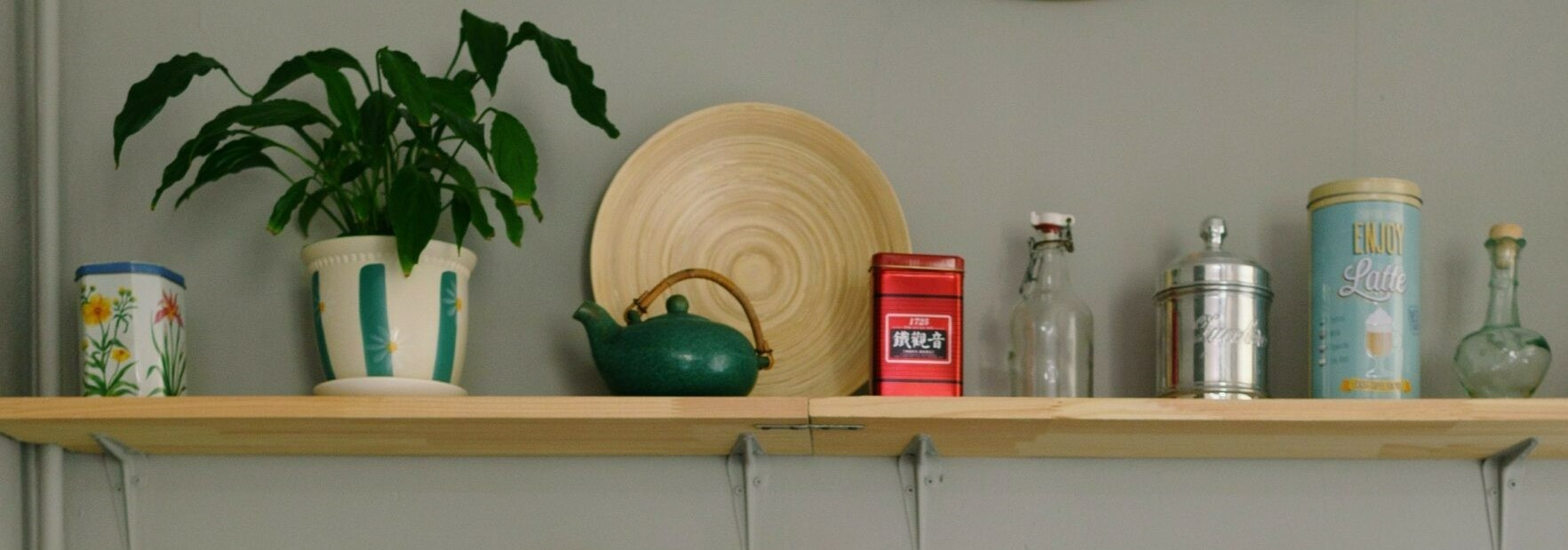 Perché non combinare il bello con l’utile? Questa è un’opzione eccellente per la decorazione delle pareti della cucina. Montate delle robuste tavole di legno sulla parete della cucina e decoratela con le belle ceramiche delle vostre ultime vacanze, con i nostalgici barattoli per la conservazione, con i profumati vasi per le erbe aromatiche o con bicchieri e tazze colorate. Non solo hanno un uso pratico, ma sono anche elementi decorativi pieni di individualità.